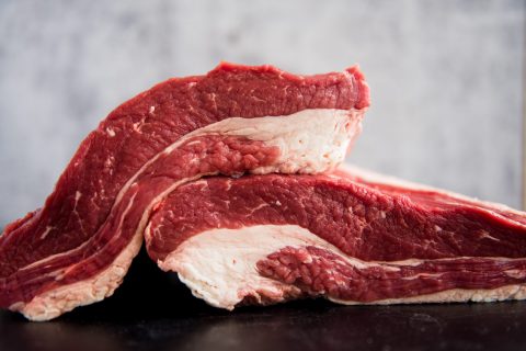 Brisket comes from the chest region of a cow, which gives it dense marbling and a flatter shape. Its high fat content makes it incredibly flavorful, tender, and juicy. Due to this high fat content, it will lose a lot of size after cooking. We recommend getting 1 lb of raw meat per person to compensate for that loss in size. Brisket is made up of two sections: the point and the flat. The point is the fattier of the two sections, while the flat is leaner. We have prime and premium choice full briskets, points, and flats available at all times. Our butchers are always happy to trim off excess fat to your exact liking.