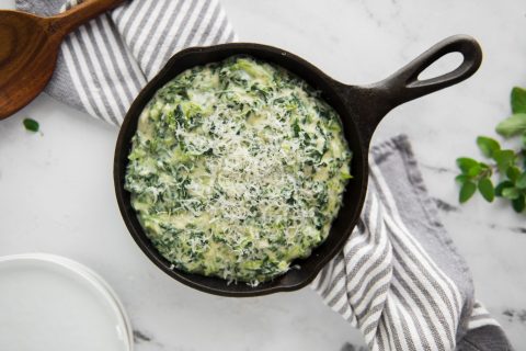 This creamy and delicious Creamed Spinach is perfect for steak pairings, parties, or daily snacks from you fridge! Try it with crackers!