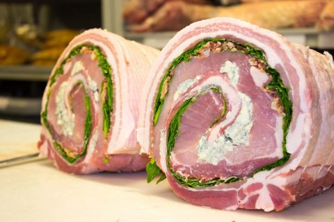 How should you use this delicious cut of pork? In general, it’s great for big meals. Whether for a weekly family meal or for a special gathering, pork loins can easily serve 10 or more people. For our butchers, this cut is perfect for stuffing and making pinwheels. In the spring or summer, keep an eye out for pinwheels stuffed with spinach, blue cheese and bacon bits. Come fall and winter you’ll see apple cornbread or cranberry cornbread stuffed pinwheels in our meat case. Start off by forming a good pan-seared crust, then finish these pinwheels off in the oven for a juicy, flavor-packed final product.