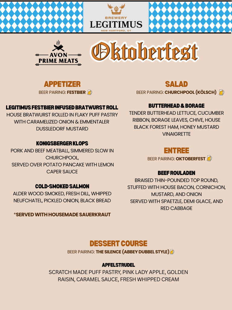Join us for a night of amazing food, great beer, and awesome company at our Oktoberfest Dinner! We’re thrilled to welcome back Avon Prime Meats for another unforgettable evening.